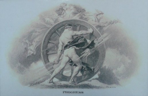 Přítomní členové ČNS i příznivci numismatiky se měli možnost seznámit nejprve s významem slova Progress (pokrok, vzestup), s výtvarnou studií, kterou si nechala zpracovat American Bank Note Company v New Yorku a nakonec i s využitím této rytiny pro různé účely.